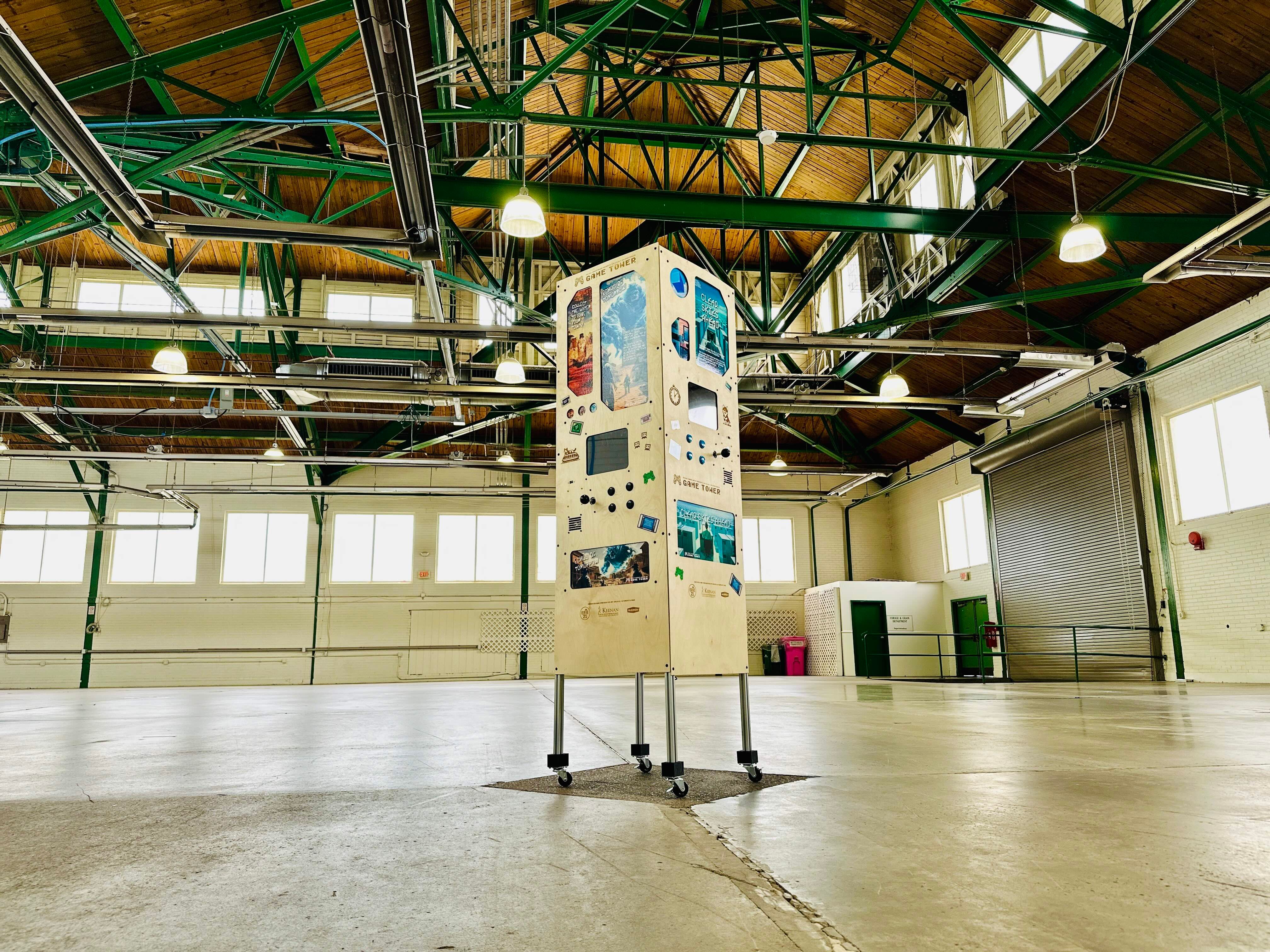 Designed by Stephanie and Isaac, the Game Tower is a unique concept: a modular, 4-sided video game console that serves as both the platform and the showcase.